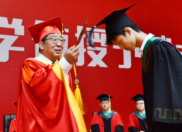 吴普特代表学校向全体毕业生表示热烈的祝贺,向辛勤耕耘的老师们致以崇高的敬意,向服务保障同学们健康成长的工作人员致以诚挚的谢意,向关心支持同学们顺利完成学业的家长、家属和社会各界朋友致以衷心的祝福。