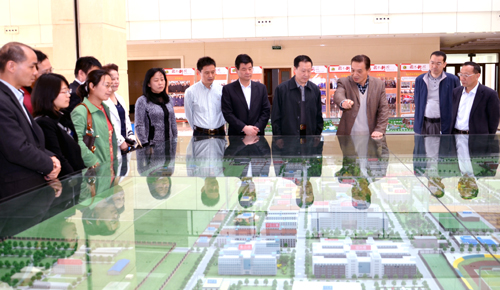 校党委副书记杨景昆向王安龙(右四)一行介绍学校情况