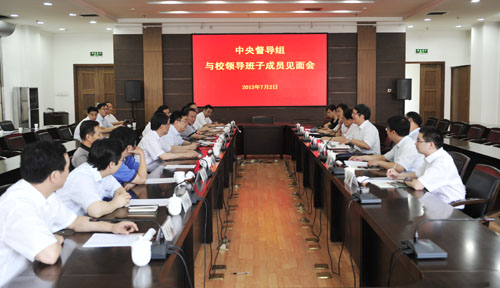 中央第四十五督导组周家伦一行与学校领导班子成员见面