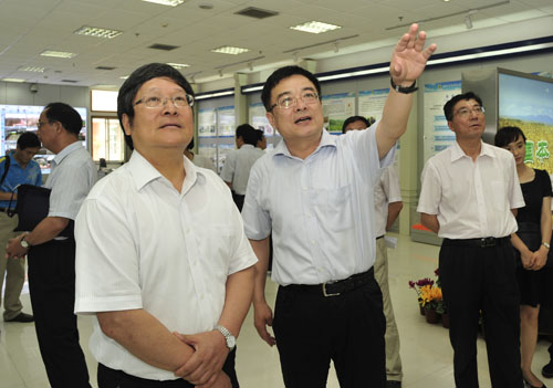 动员会前,中央第四十五督导组与我校校领导班子举行见面会,督导组组长周家伦、校党委书记梁桂分别讲话。周家伦一行还参观了我校科技推广展室。