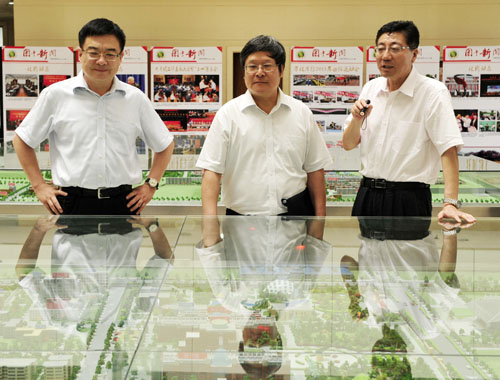 孙其信校长向中央第四十五督导组组长周家伦介绍学校概况
