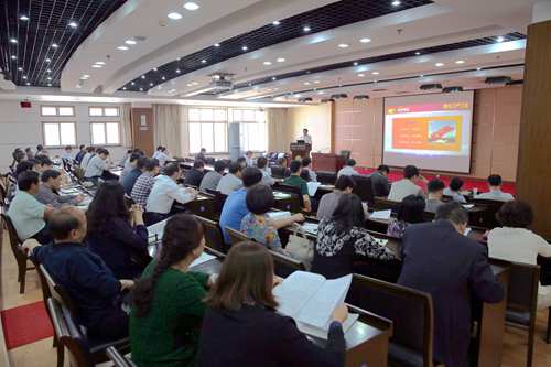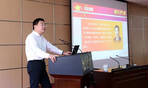 全体校领导,校党委委员、纪委委员,全体处级以上领导干部,党委各部(室)科级以上干部听取了党课,党课由常务副校长赵忠主持。