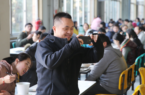 学生为校长“光盘”拍照
