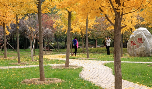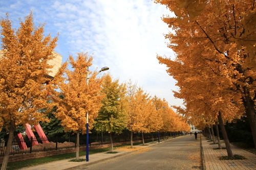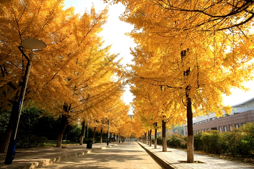 组图:校园已立冬 银杏正金黄