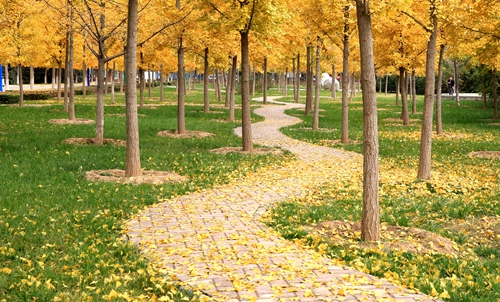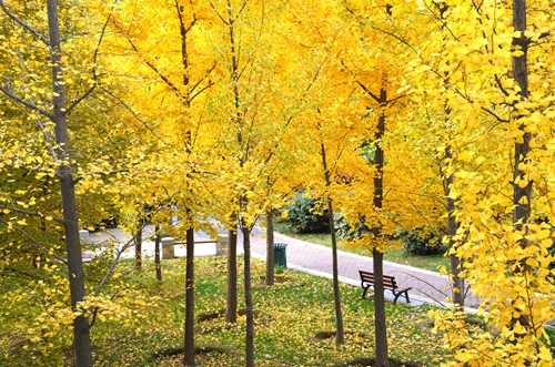 立冬过后,阳光时来。我校的数条银杏路与数片银杏林热闹了,金黄满眼,暖意融融。