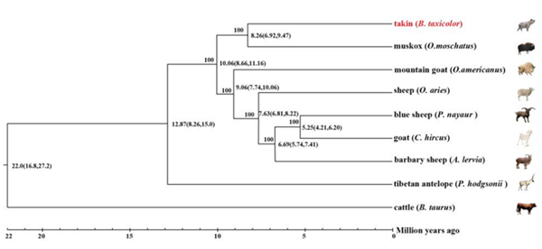 该研究通过基因组从头测序,成功构建了羚牛染色体水平的参考基因组(基因组大小为~2.95 Gb)。系统进化分析表明羚牛与麝牛的亲缘关系最近,而不是绵羊或山羊等其它羊亚科动物。羚牛和北极的麝牛都属于羊亚科中体型最大的动物,约于826万年前分化开来。进一步的遗传多样性分析发现羚牛在“秦岭四宝”中的遗传多样性最低,这些研究结果对羚牛的保护工作具有重要的科学价值。