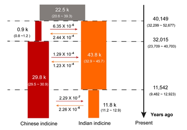 图2 中国南方瘤牛与印度瘤牛的群体大小和分歧历史重构