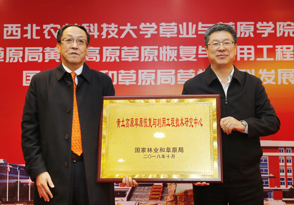 彭有冬为我校黄土高原草原恢复与利用工程技术研究中心授牌