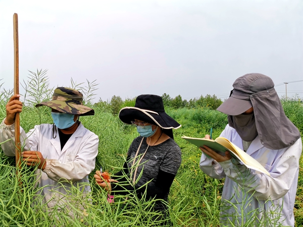 “我的试验已经全部完成,主要研究方向是油菜株型,此次田间试验主要是协助师弟调查分枝夹角等性状,完成好课题交接工作。” 4月中旬已提交毕业论文的2020届硕士毕业生郭娜早早申请返校,“五一”假期第一天就带领师弟开始了田间试验,她说:“习近平总书记曾经说过,每一代人有每一代人的长征路,每一代人都要走好自己的长征路。这种长征精神在实验室体现得尤为明显,作为毕业生,更有责任有义务把课题交接好。”