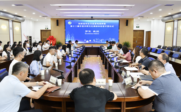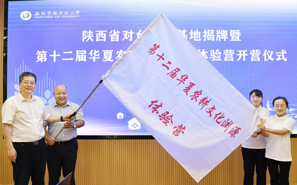 6月27日,第十二届华夏农耕文化渊源体验营开营暨“陕西省对台交流基地”揭牌仪式在我校举行。陕西省委台办、省政府台办副主任陈强,我校罗军副校长为博览园获批设立的“陕西省对台交流基地”揭牌,并为第十二届华夏农耕文化渊源体验营授旗。省台办交流交往处处长袁永明宣读了批复文件,两校营员代表作了交流发言。