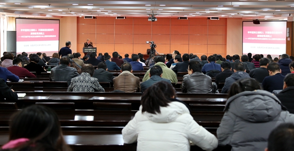 为深入学习贯彻落实全国教育大会精神,12月5日,学校举办全国教育大会精神专题培训报告会,陕西师范大学任晓伟教授作了主题报告。报告会由校党委常务副书记赵忠主持,学校全体处级领导人员,教职工党支部书记,党委各部(室)、纪委、工会、团委的科级干部共300余人参加培训。组织统战支部全体党员认真聆听的报告。