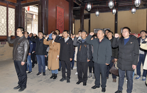 安吴青训班是在中共中央青年工作委员会领导下,以西北青年救国联合会的名义,在当时的国民党统治区陕西省泾阳县安吴堡举办的培训青年干部的重要场所。它是抗日青年的旗帜、革命青年的熔炉、中国青运史上的丰碑。在安吴青训班革命旧址,大家一起进行了参观学习,重温了入党誓词。